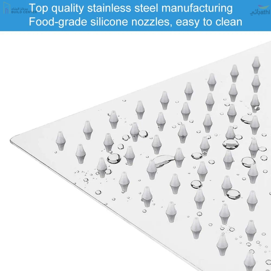 - تغطية واسعة: رأس دش 12 بوصة يقدم تغطية واسعة وتوزيعًا متساويًا للماء.