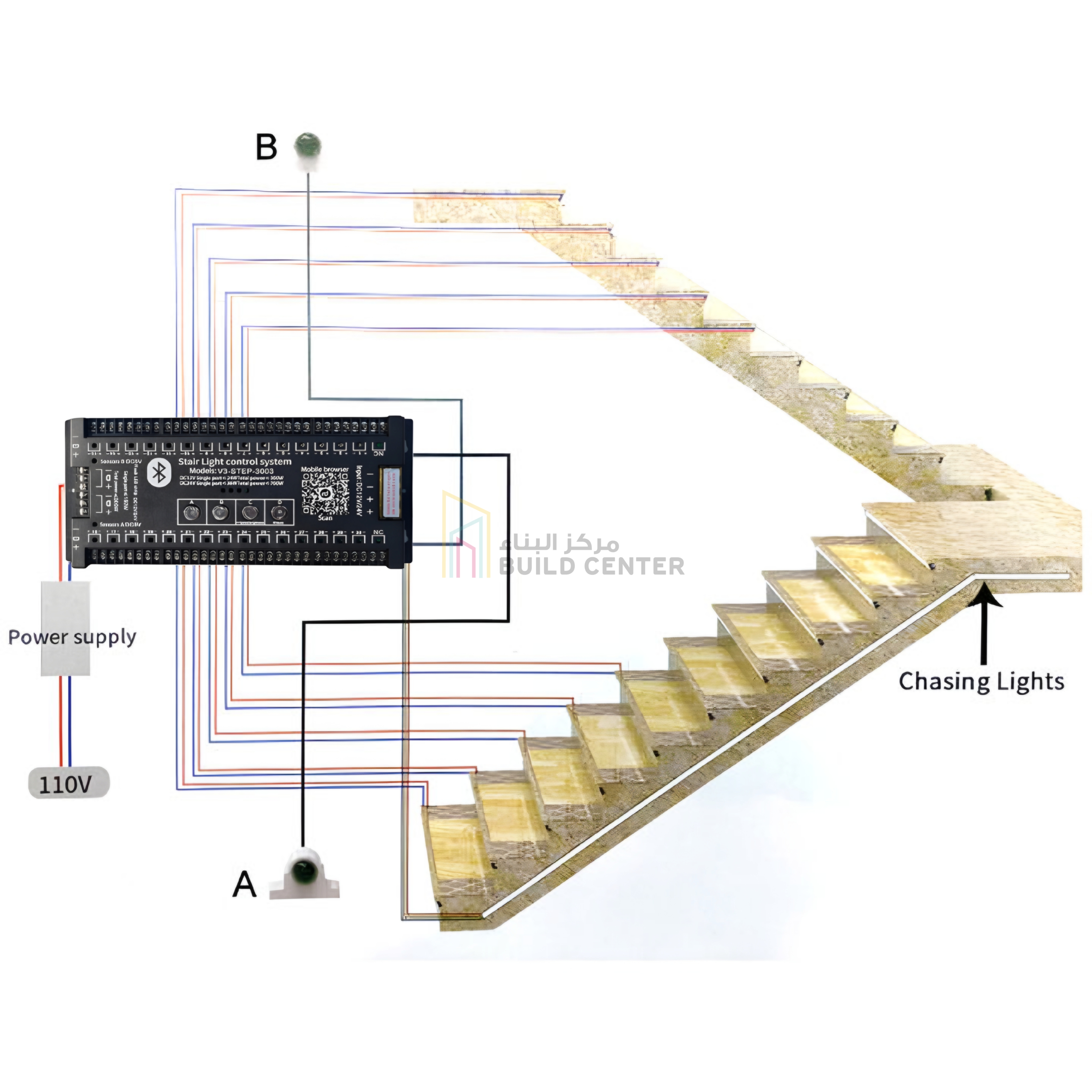 التحكم بإضاءة الدرج بتقنية البلوتوث Bluetooth Stair Light Controllor 800W