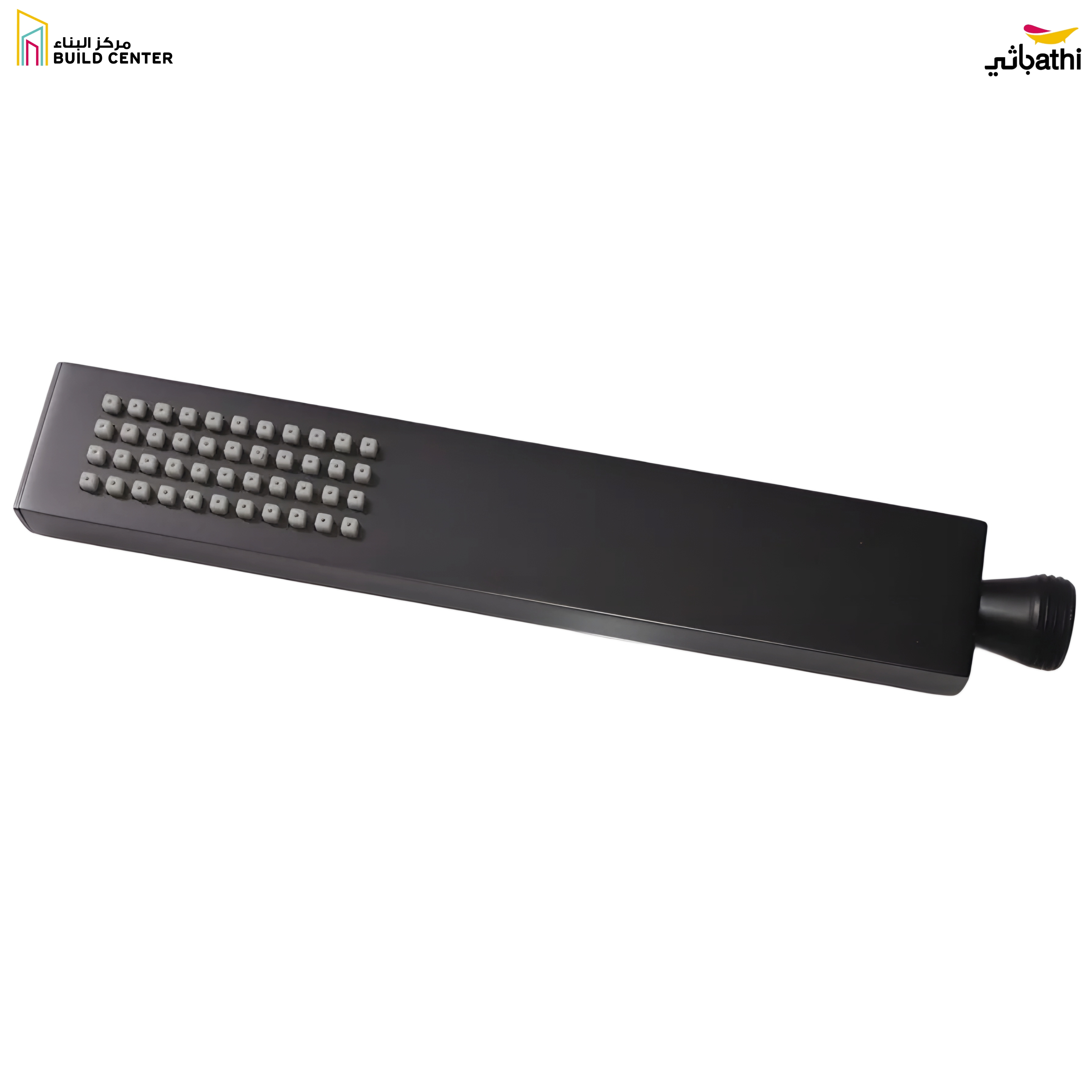 Square Shower Hand+PVC Hose+Holder Black هو مجموعة دش تتضمن رأس دش مربع، خرطوم PVC، وحامل دش بتشطيب أسود غير لامع.