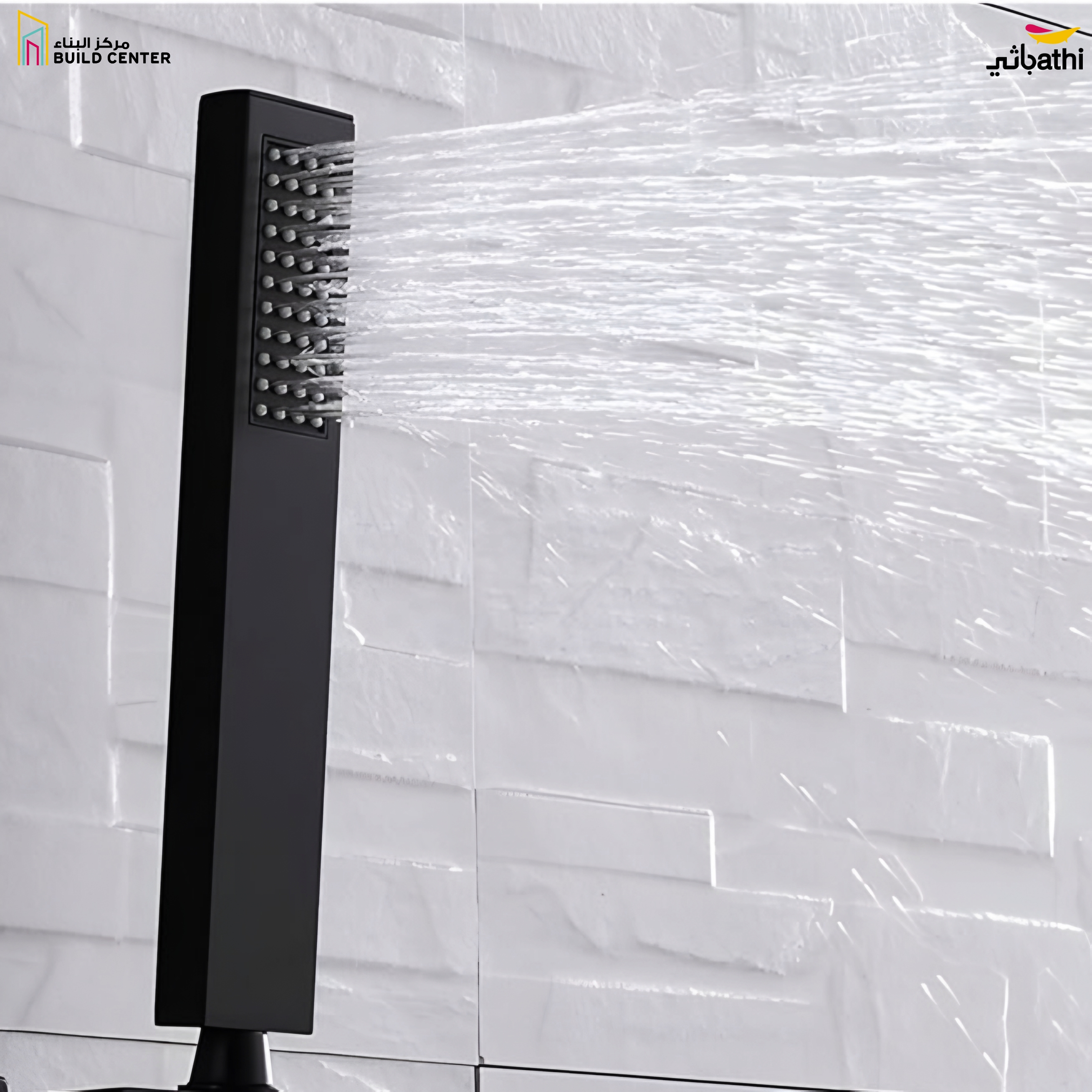 - التصميم: رأس دش مربع مع خرطوم مرن وحامل لتثبيت الرأس بسهولة.